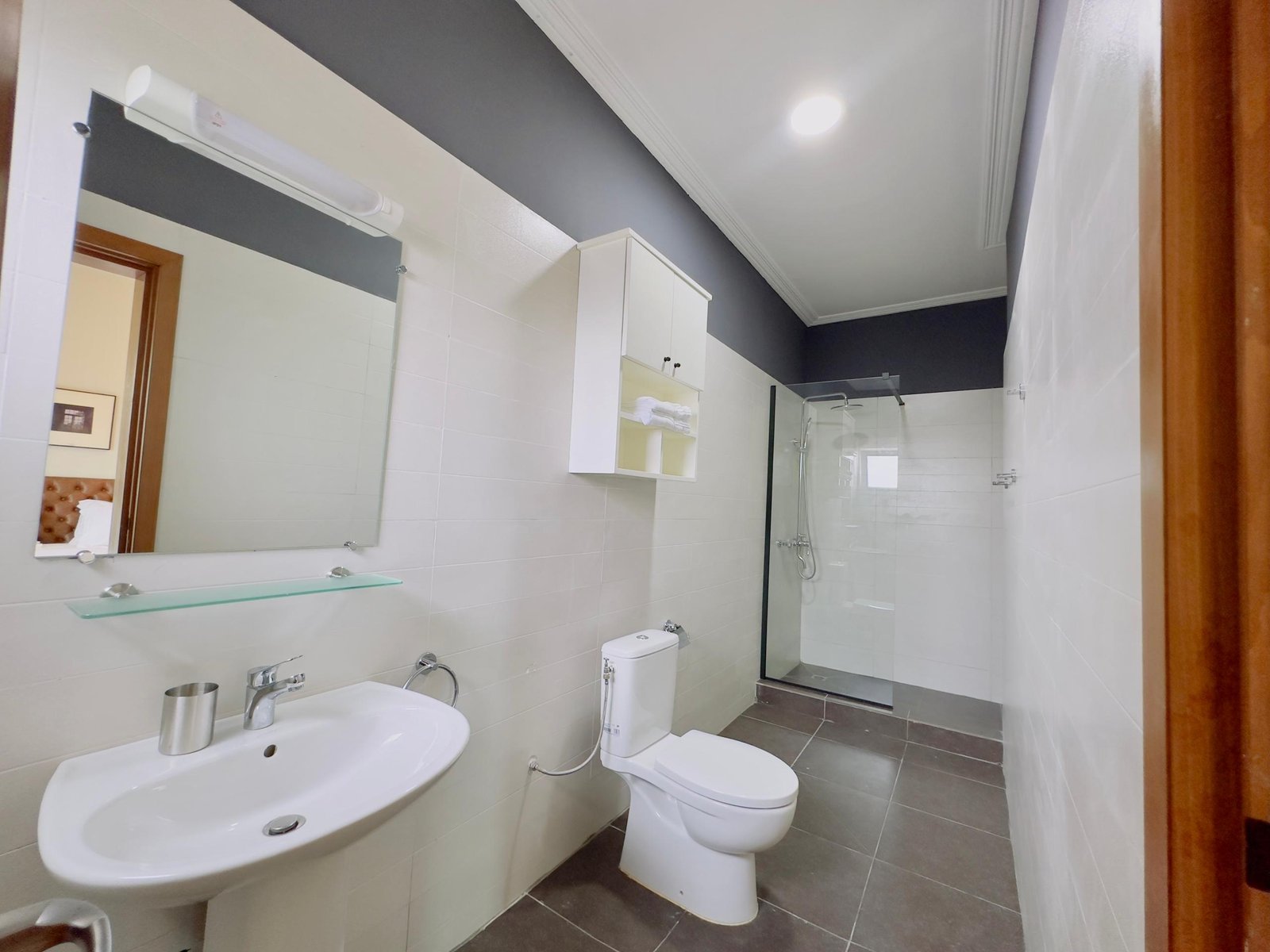 Three modern, spacious bathrooms featuring high-quality fixtures.